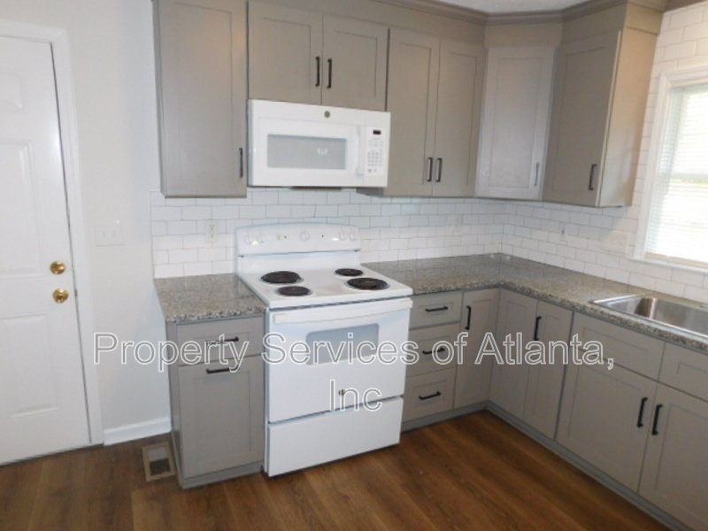 Spacious brick ranch with fenced in backyard. An entry foyer leads to an open plan with a living room, separate dining room, kitchen with grey cabinets, Granite counters, tile backsplash, white appliances (microwave, electric stove, dishwasher, refrigerator) and panty. There is a large breakfast area with access to the rear Sunroom. There are two spare bedrooms with ceiling fans and a full hall bath with tub/shower combination. Master bedroom has a ceiling fan and attached full bath with single vanity and shower only. The home has a large fenced in backyard with a shed for storage. There is a 2-car front entry garage. Close proximity to Cumberland Mall & Galleria, the Battery, Truist Park, Marietta Square, and a variety of shopping and dining. Landscaping is included with the rent!