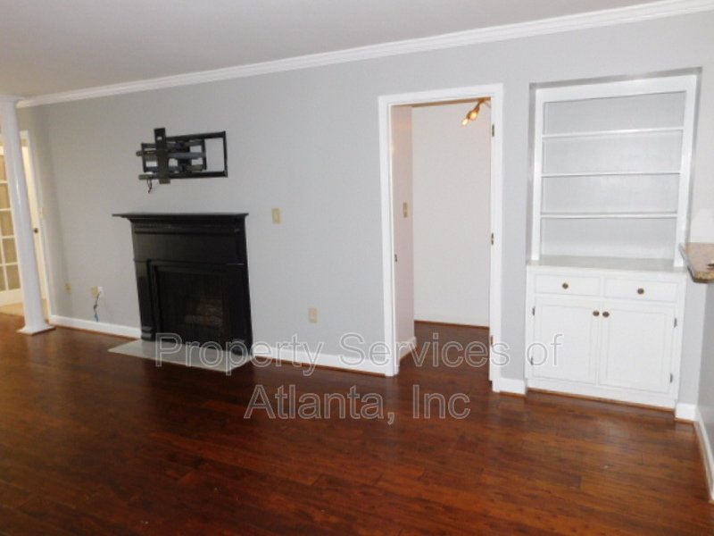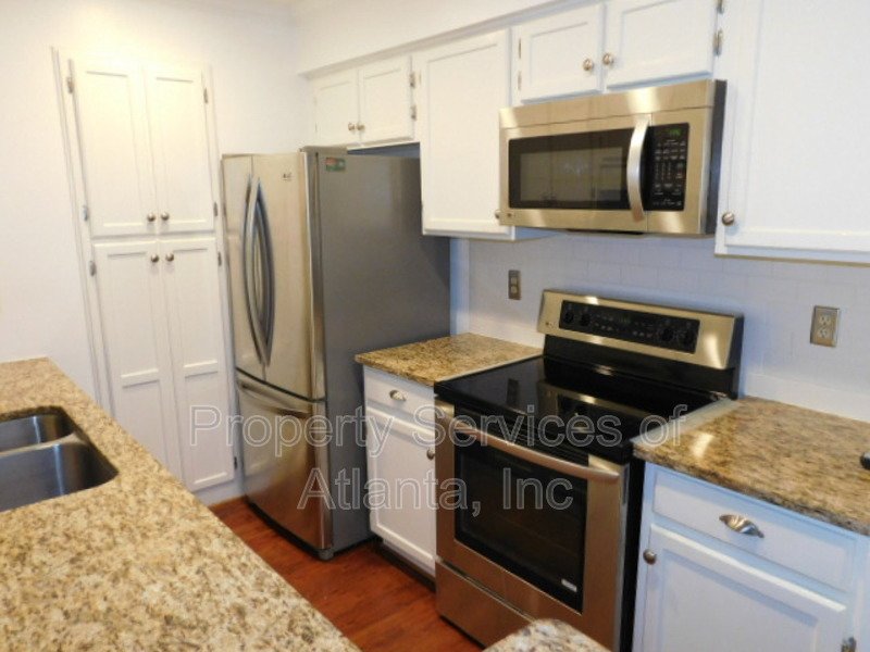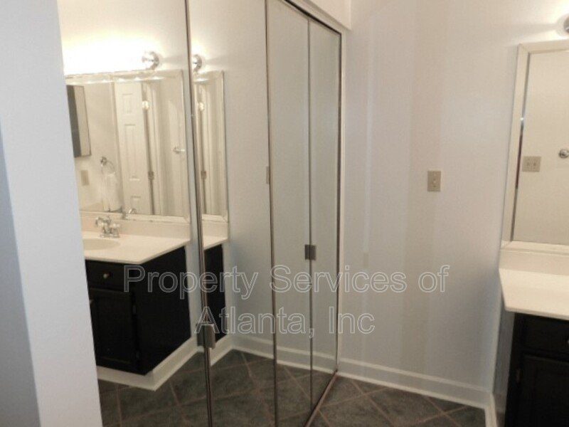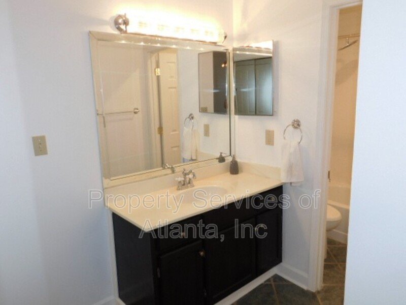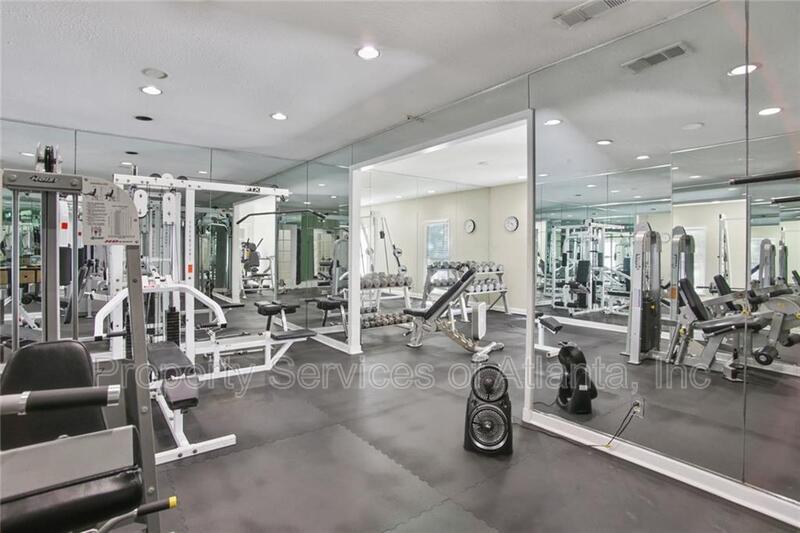 Enter this charming main level unit into an open floorplan with a dining area and oversized living room with built-in shelves & cabinet, hardwood flooring, and slider access to the outside patio. Kitchen has Granite counters and breakfast bar, white cabinets, disposal and stainless appliances (refrigerator, microwave, electric stove and dishwasher). Master suite has two closets. Master bath has tile floors< dual vanities, marble counters and large walk-in shower. There is a full hall bath with tile floors, single vanity and tub/shower combination. Laundry closet with washer & dryer included. Spare bedroom also has French doors that leads to the living room area. Unit has two dedicated parking spaces. Community amenities include a clubhouse, dog park, fitness center, pool and tennis courts. Rent includes water, sewer, trash, landscaping and use of amenities. There is a $300 move-in/move out fee. Great location close to highways, Lenox Mall, Phipps and Shops of Buckhead.