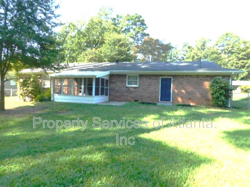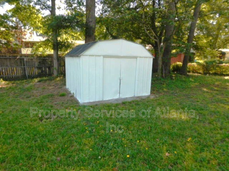 Spacious brick ranch with fenced in backyard. An entry foyer leads to an open plan with a living room, separate dining room, kitchen with grey cabinets, Granite counters, tile backsplash, white appliances (microwave, electric stove, dishwasher, refrigerator) and panty. There is a large breakfast area with access to the rear Sunroom. There are two spare bedrooms with ceiling fans and a full hall bath with tub/shower combination. Master bedroom has a ceiling fan and attached full bath with single vanity and shower only. The home has a large fenced in backyard with a shed for storage. There is a 2-car front entry garage. Close proximity to Cumberland Mall & Galleria, the Battery, Truist Park, Marietta Square, and a variety of shopping and dining. Landscaping is included with the rent!